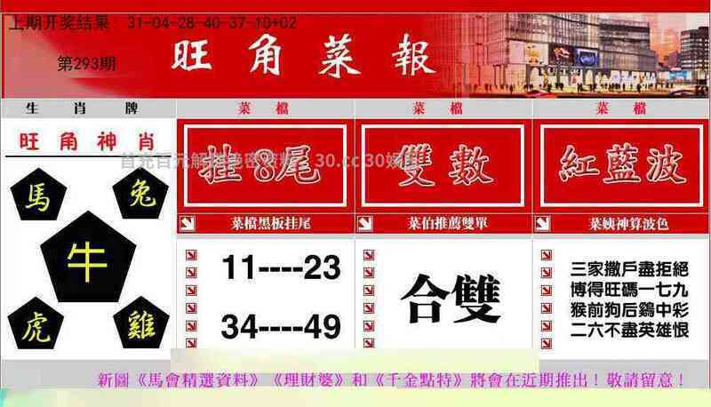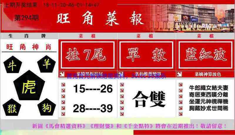 294期单【牛蛇猪鸡】 双 【猴马狗虎】开鼠18错